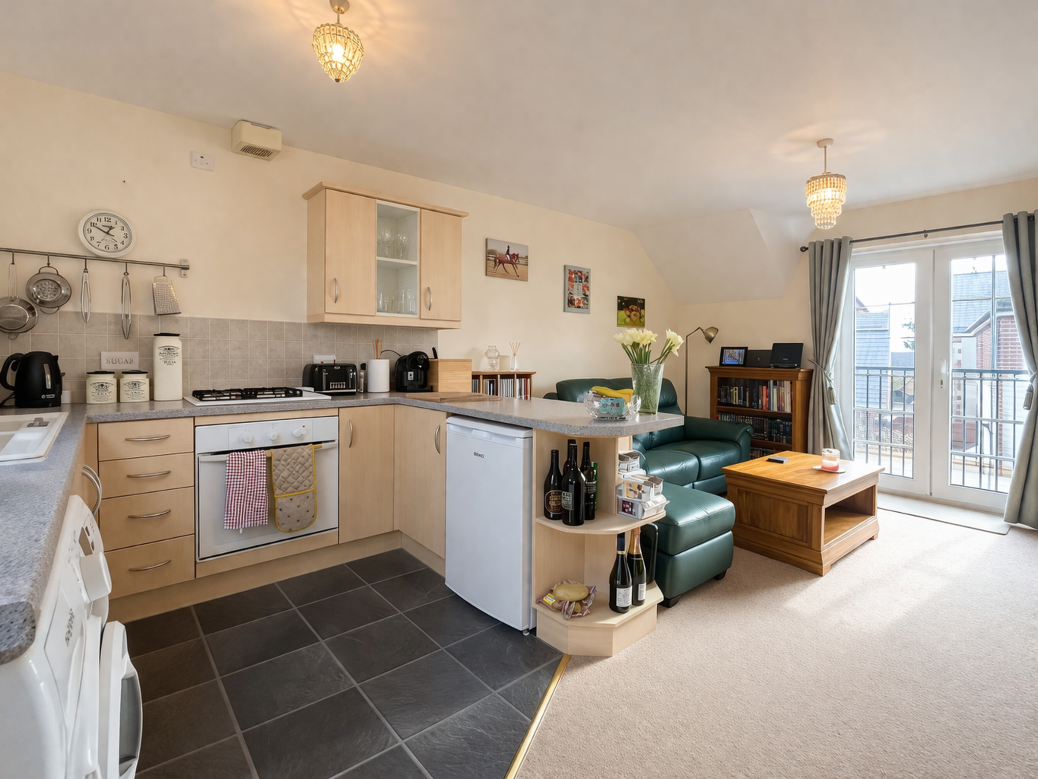 The property features a bright and spacious open-plan kitchen and sitting room, creating a sociable and versatile living space. The modern fitted kitchen is well-equipped with ample storage and worktop space, seamlessly flowing into the comfortable living area, which benefits from excellent natural light.