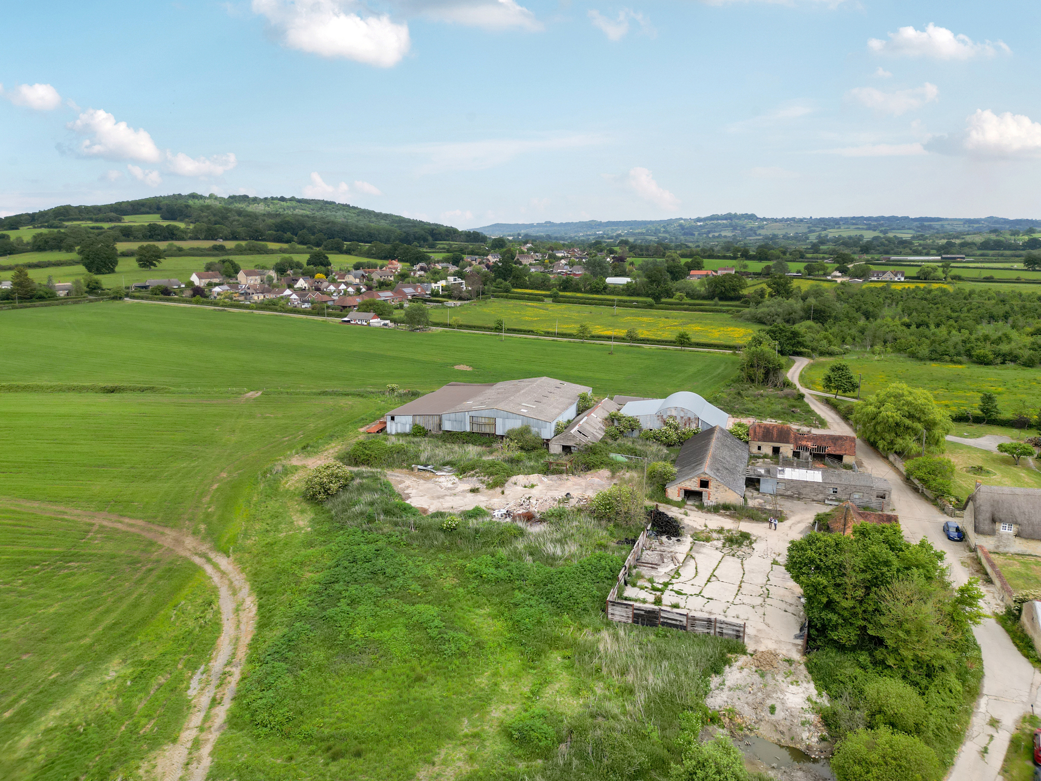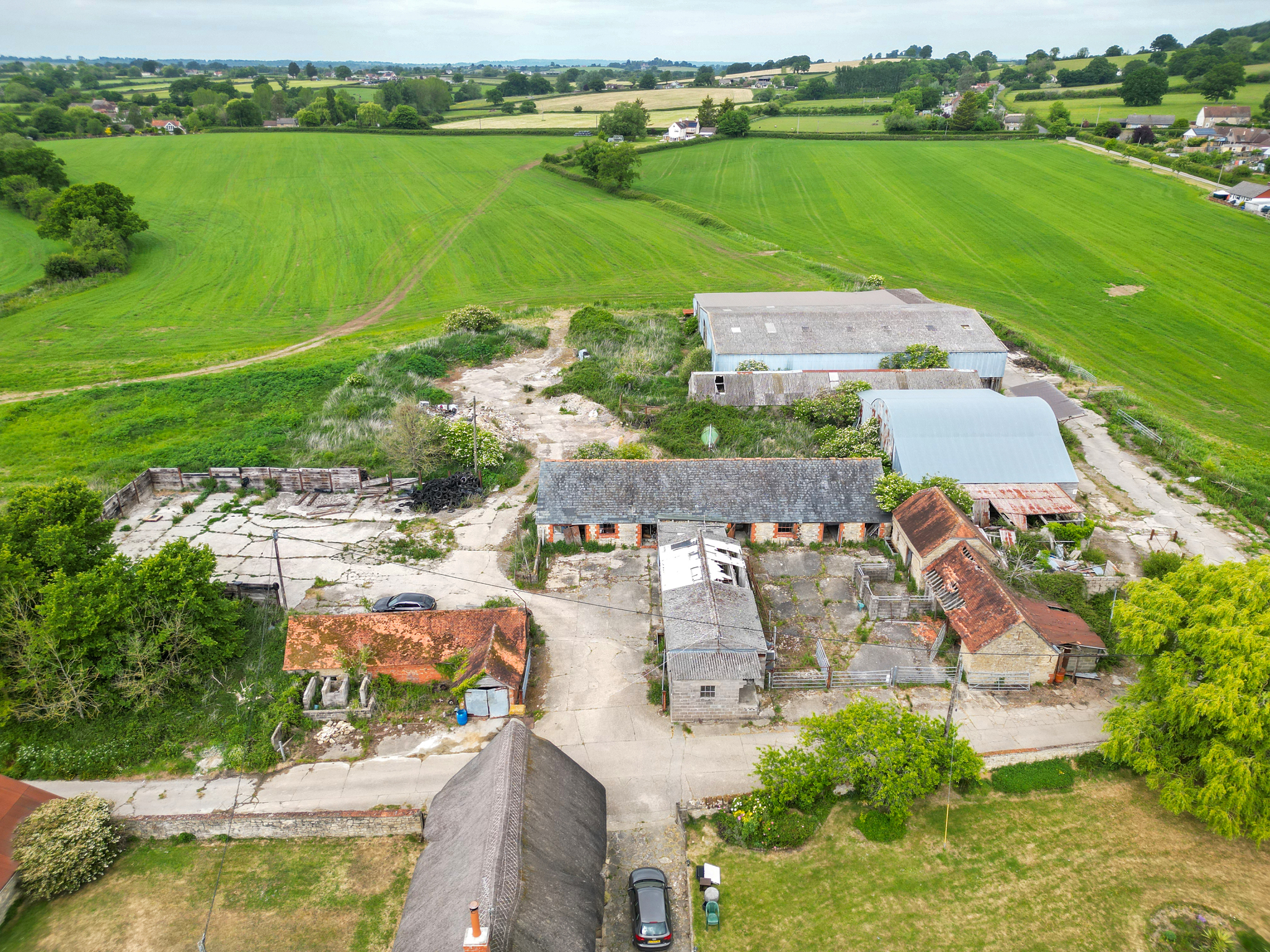 Great House Farm is situated on the southern side of the village and is reached from Dover Street via a long access road. The buildings currently comprise a mix of older traditional brick and Marnhull stone barns and a range of modern portal frame buildings around a traditional farmyard.