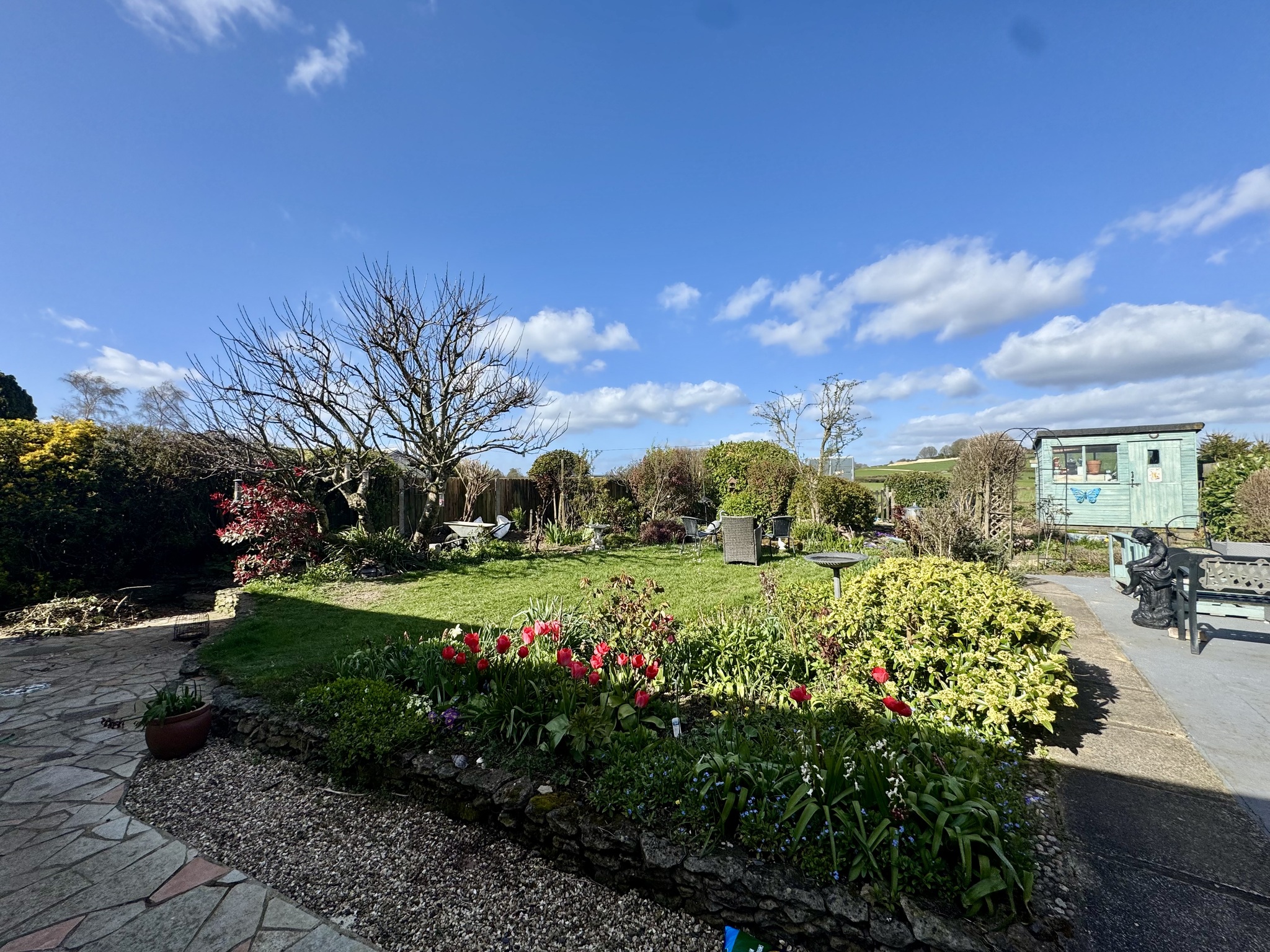 Enclosed rear garden. Neatly manicured front garden.