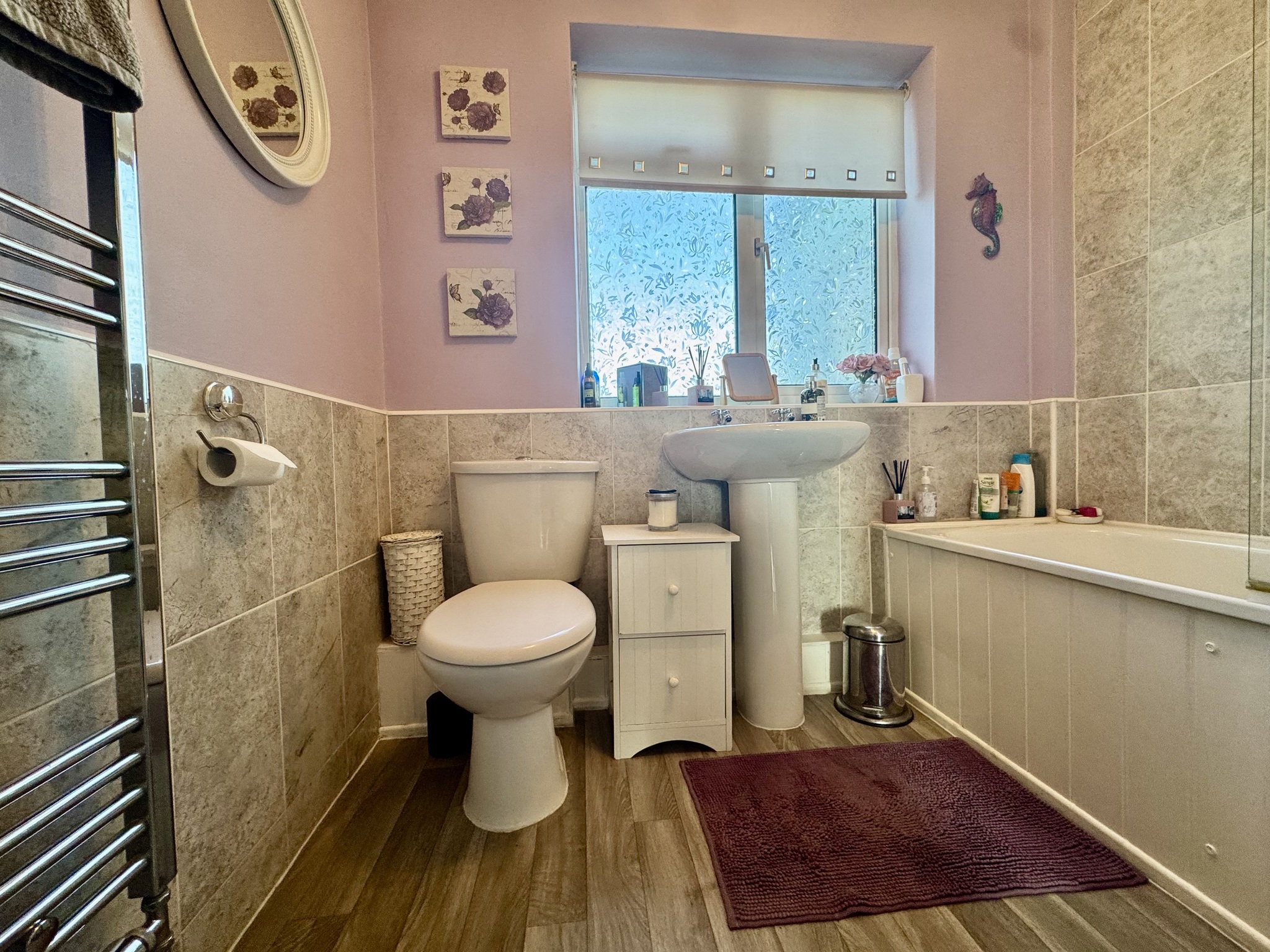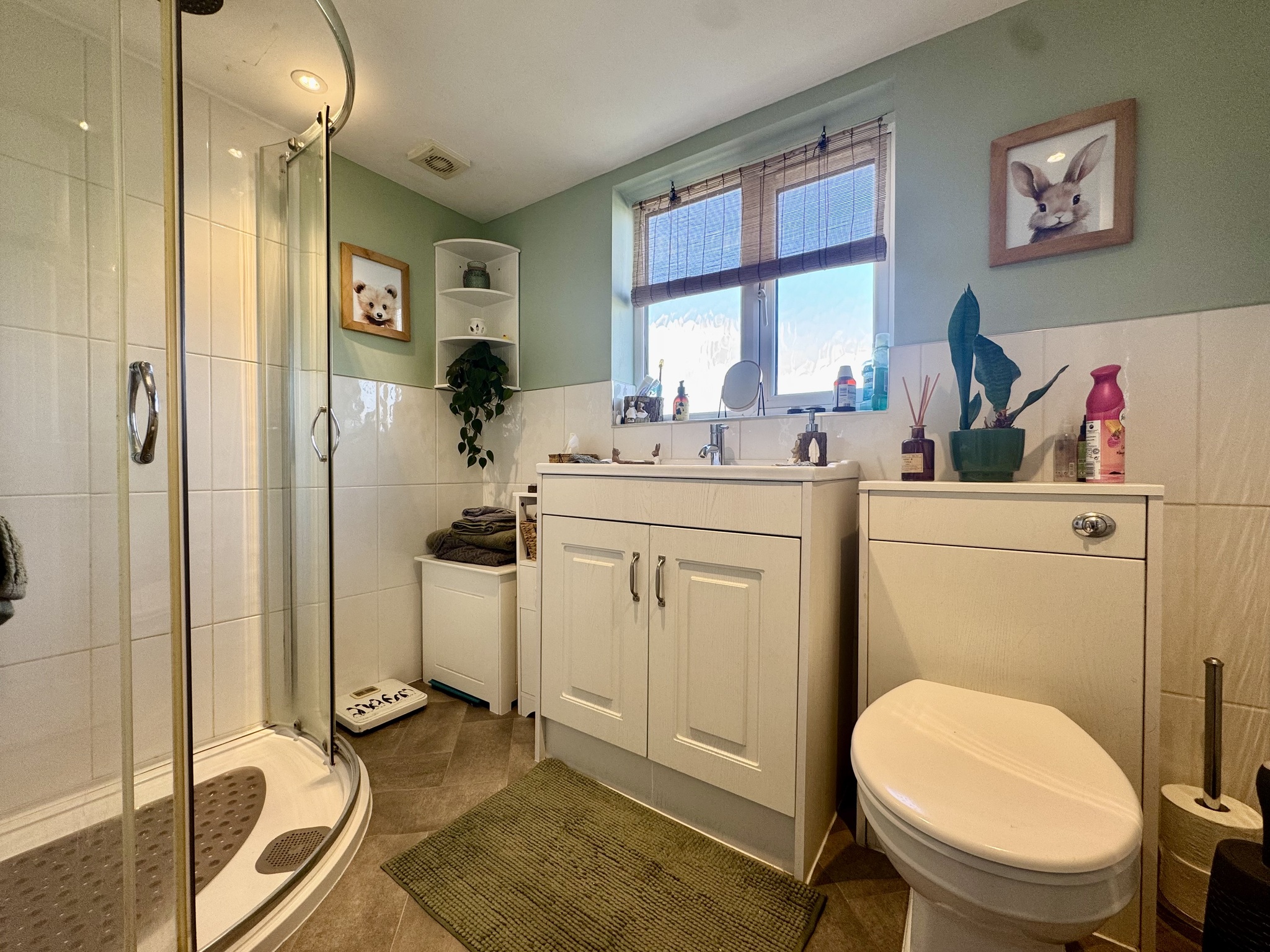 The home benefits from a downstairs family bathroom, while the master bedroom enjoys its own en-suite shower room. A further upstairs bathroom adds convenience and flexibility, particularly for visiting guests or older children.