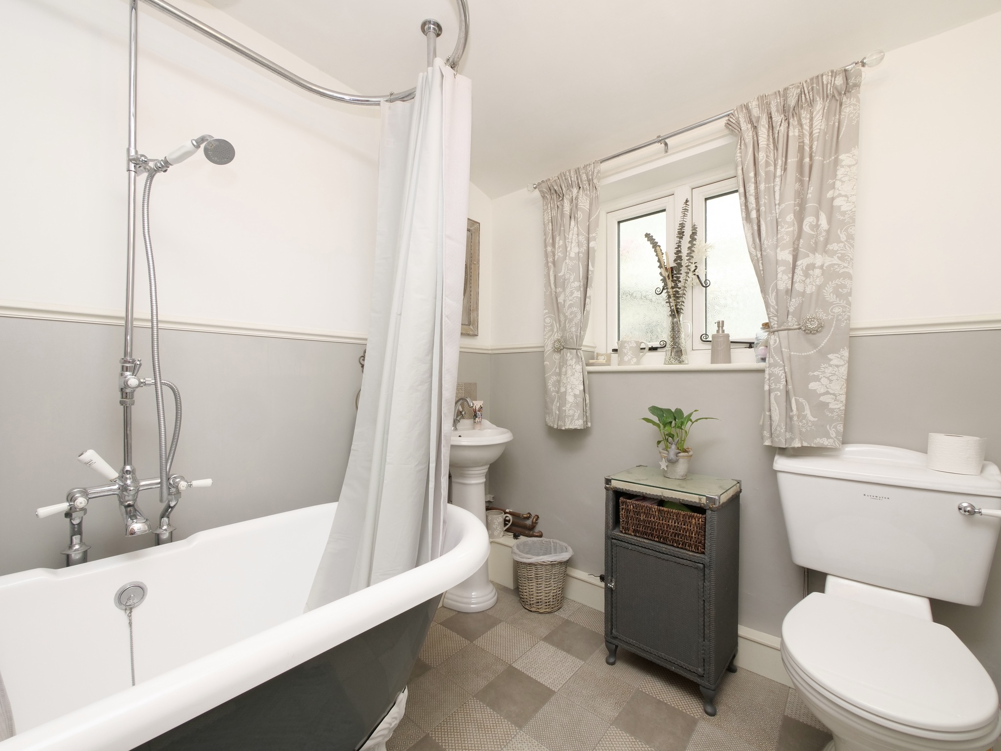 The property benefits from two beautifully appointed bathrooms, each fitted with elegant roll-top baths and integrated showers, combining classic charm with modern convenience. Throughout the home, a neutral, timeless palette enhances the light and space, showcasing original character features complemented by contemporary finishes.