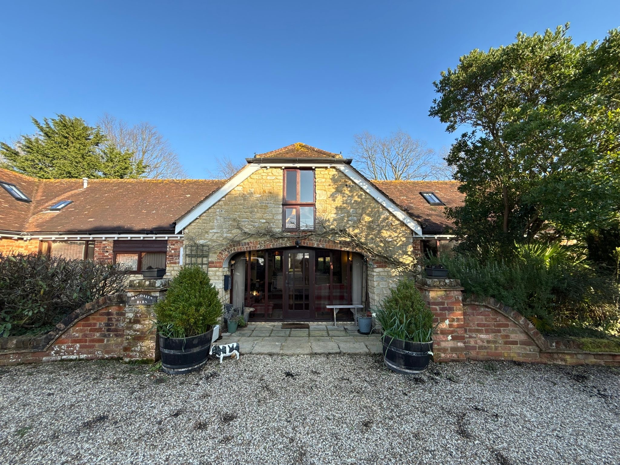 Set within an exclusive courtyard development in the highly regarded village of Fifehead Magdalen, this impressive barn conversion offers over 2,400 sq ft of versatile and well-presented accommodation, blending character features with modern practicality.