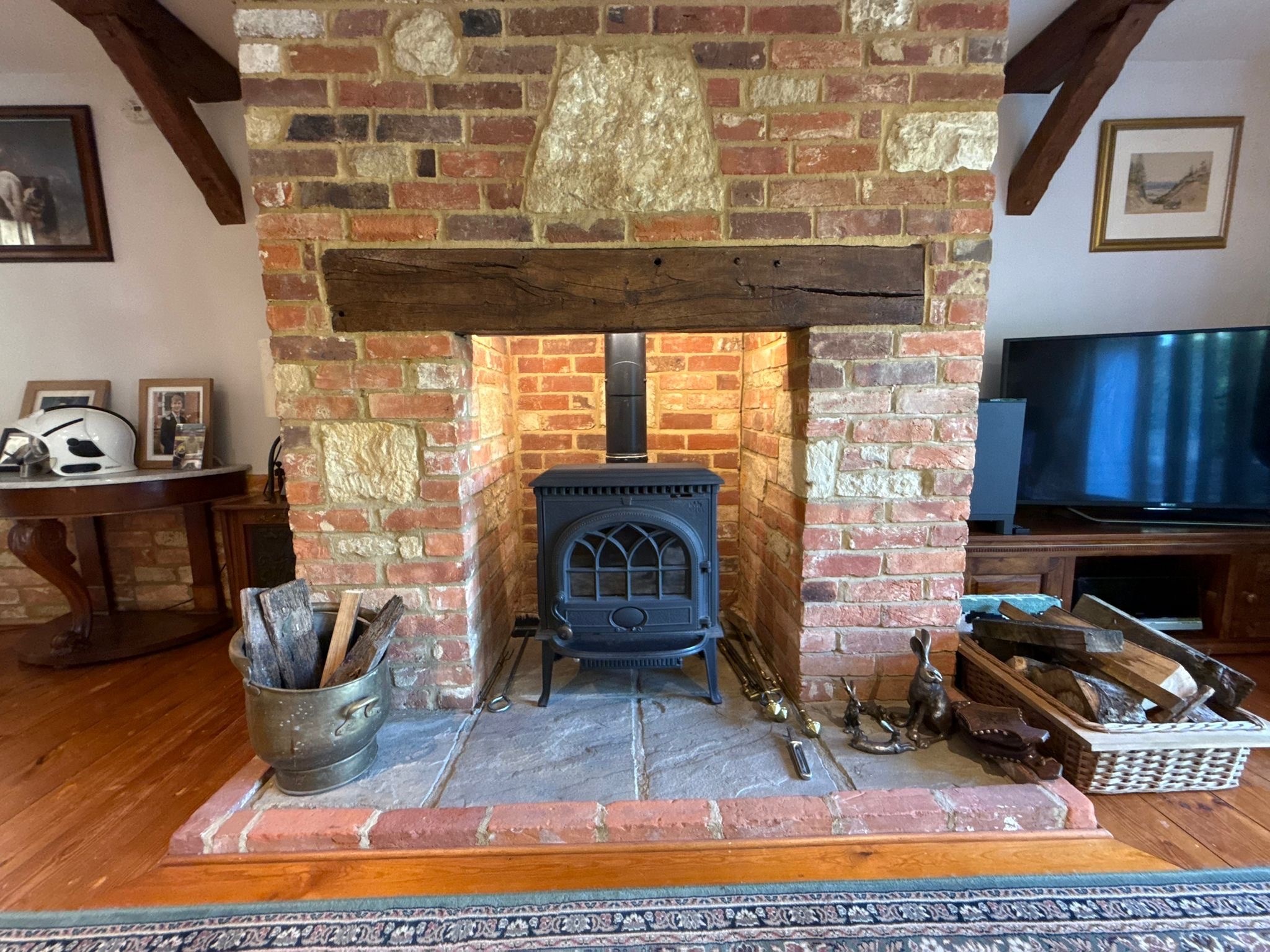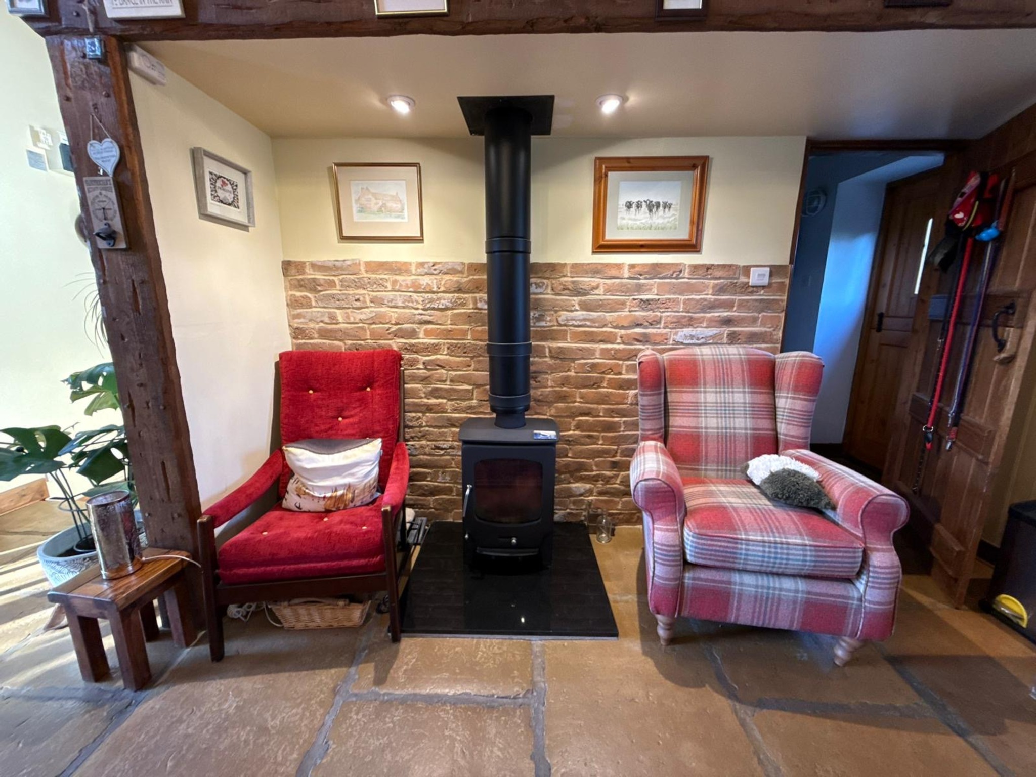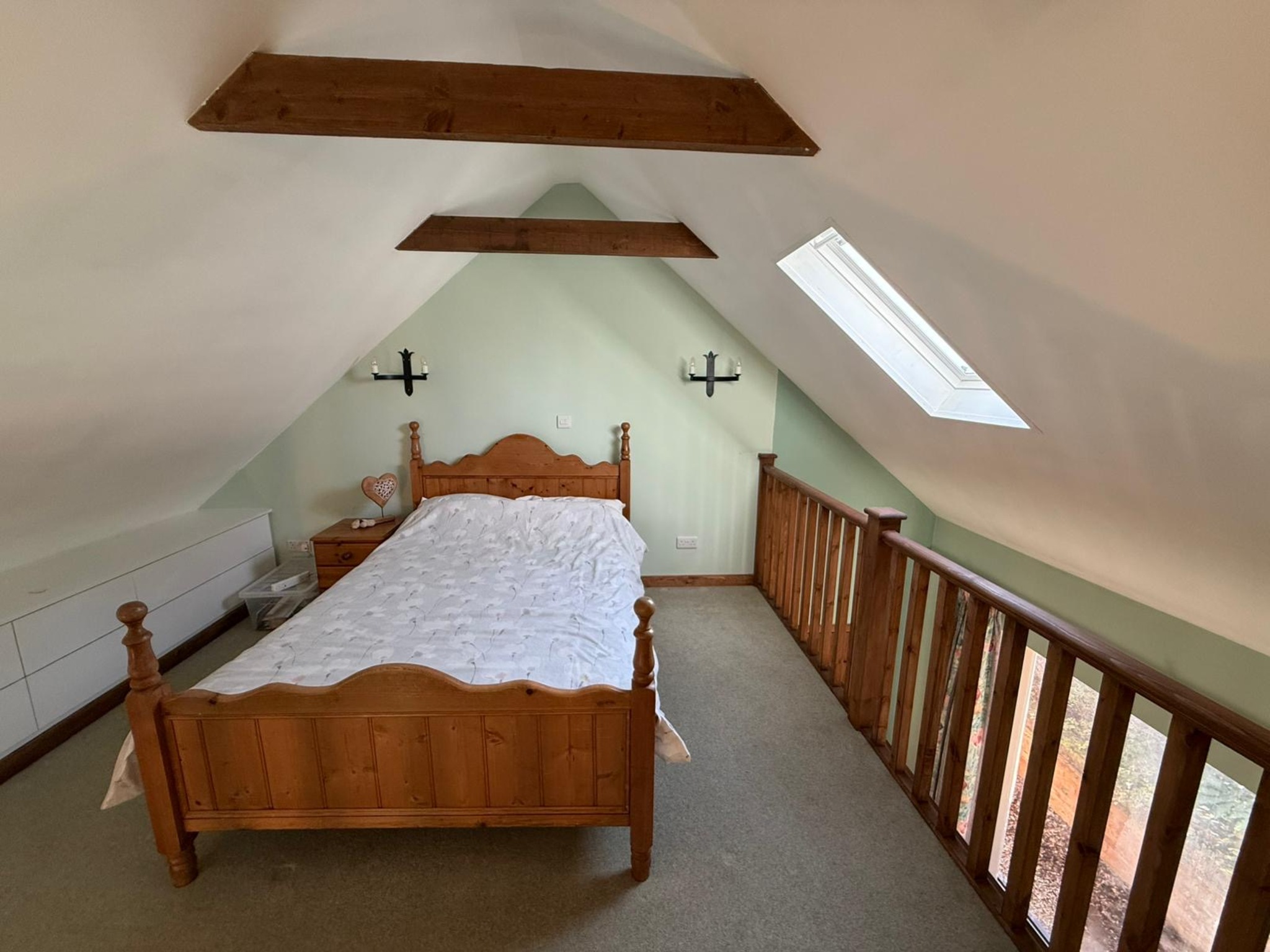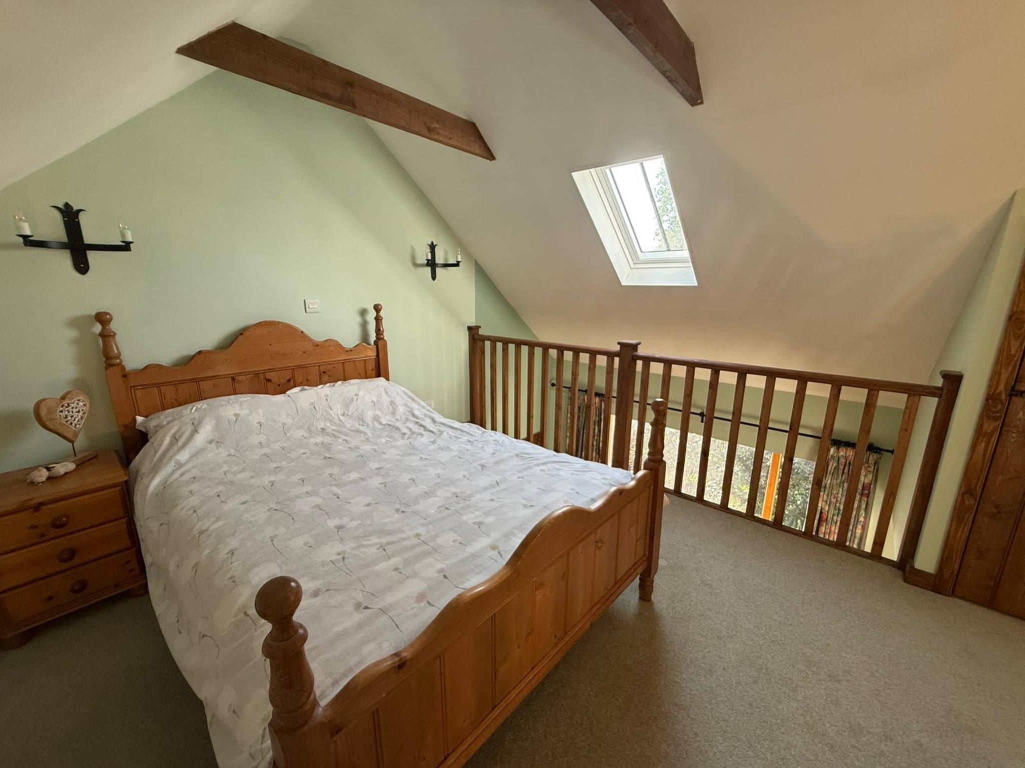 The heart of the home is the striking kitchen/dining room, where a vaulted ceiling and full-height arched glazing create a wonderfully light and welcoming space. The separate sitting room, complete with exposed beams and a wood-burning stove, offers a cosy yet spacious retreat. A downstairs WC completes the ground floor.