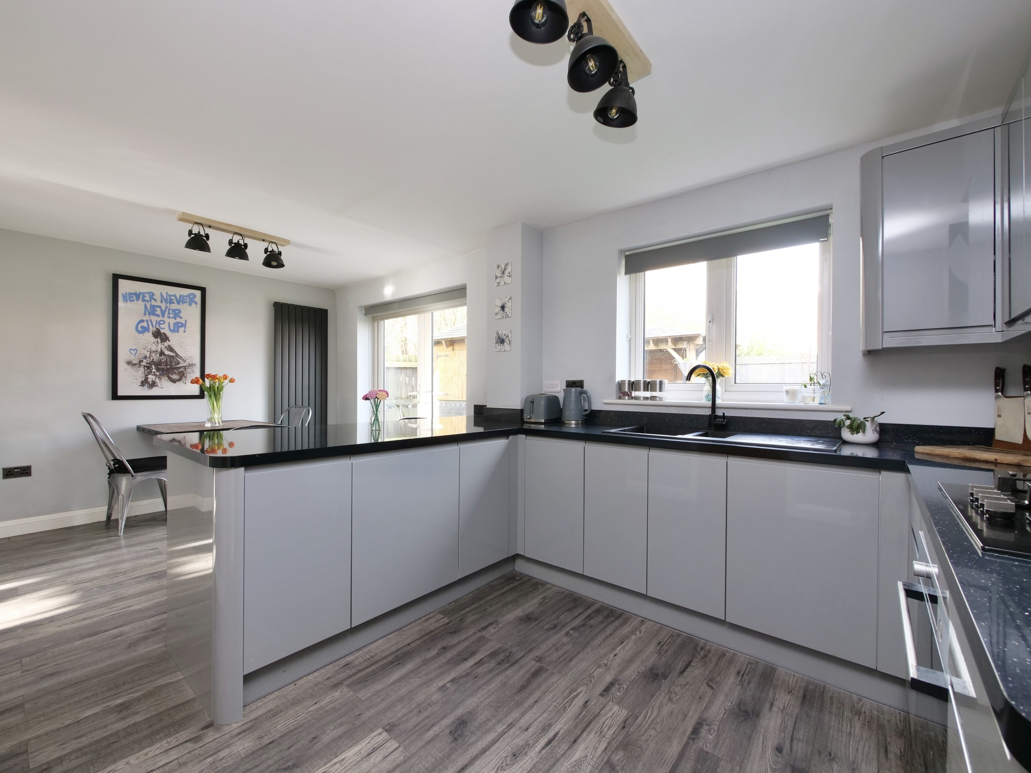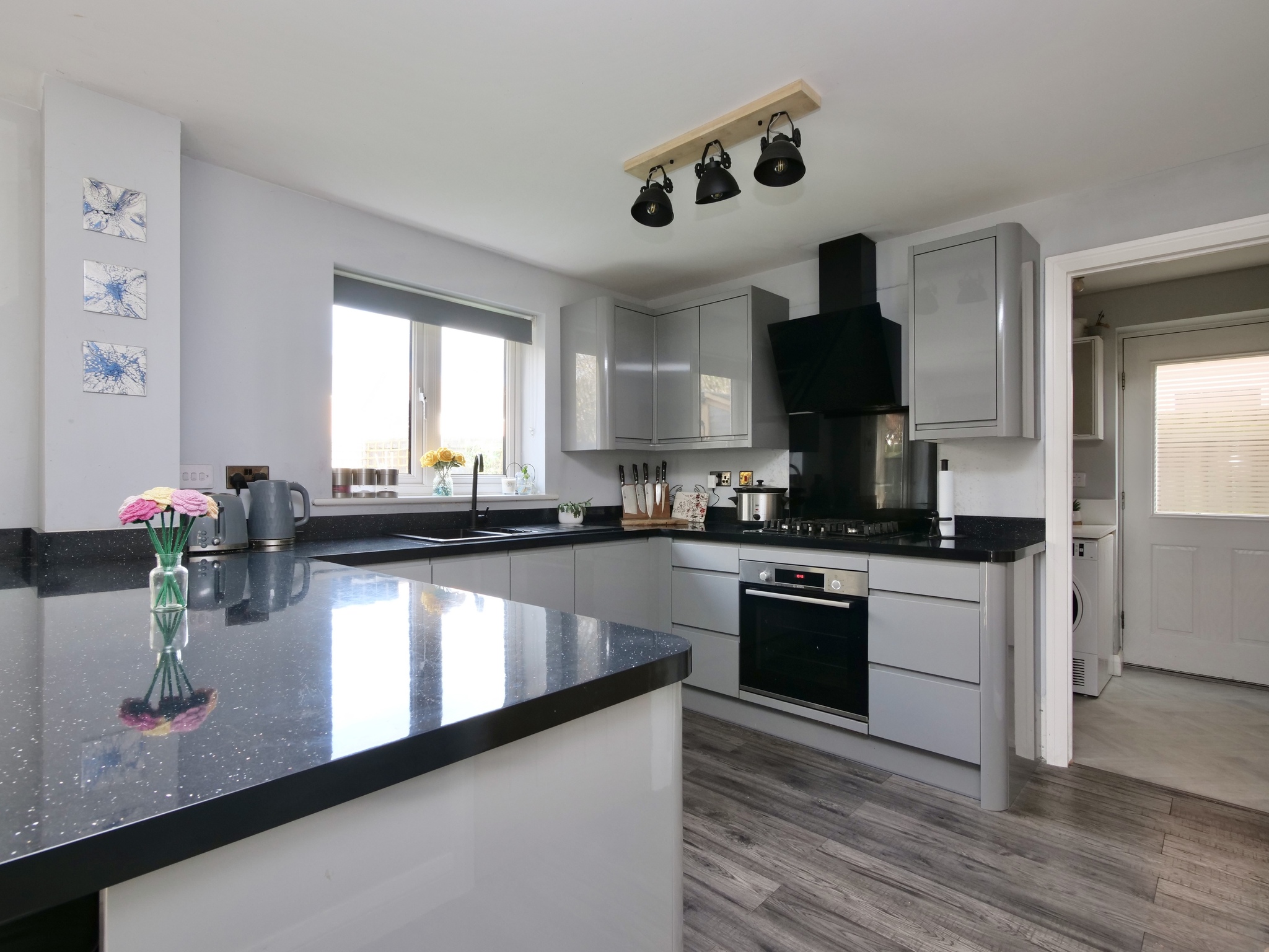 On entering the home, you are greeted by a welcoming hallway leading to a spacious, light-filled sitting room, perfect for relaxing or entertaining. The heart of the home is the contemporary fitted kitchen/diner, offering ample storage, integrated appliances, and plenty of room for family dining. From here, a separate utility room provides additional convenience and direct access to the garden.