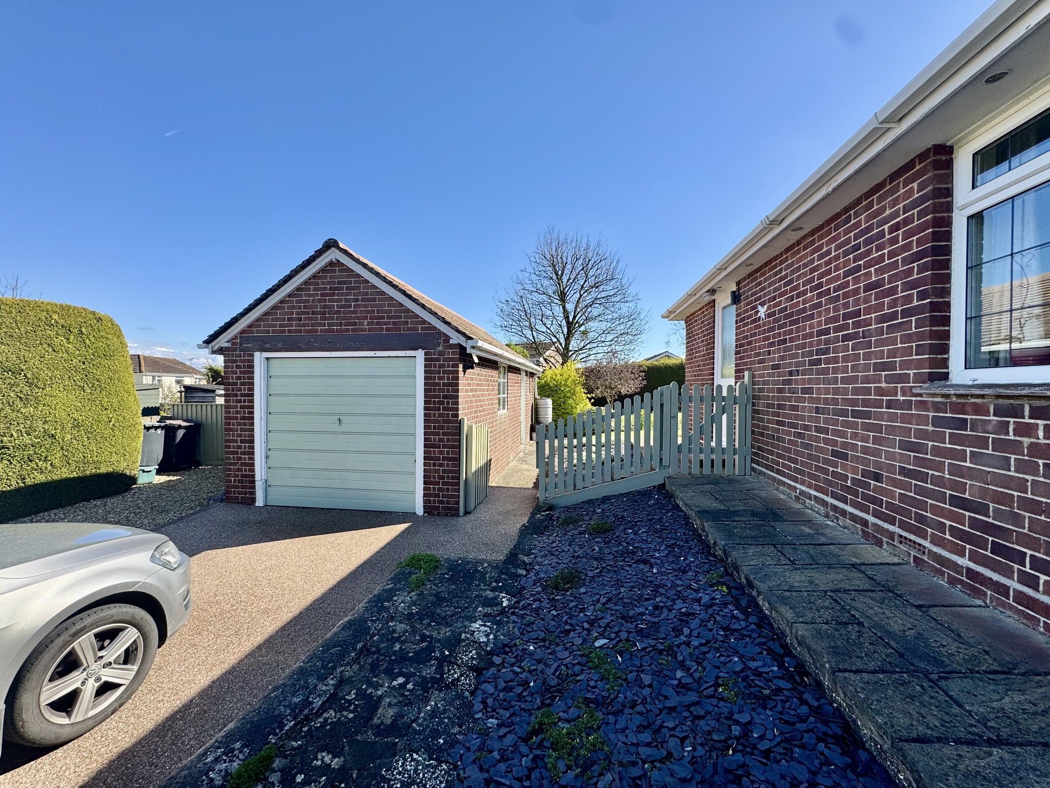 The property is approached via a private driveway providing ample off-road parking and leading to a detached garage.