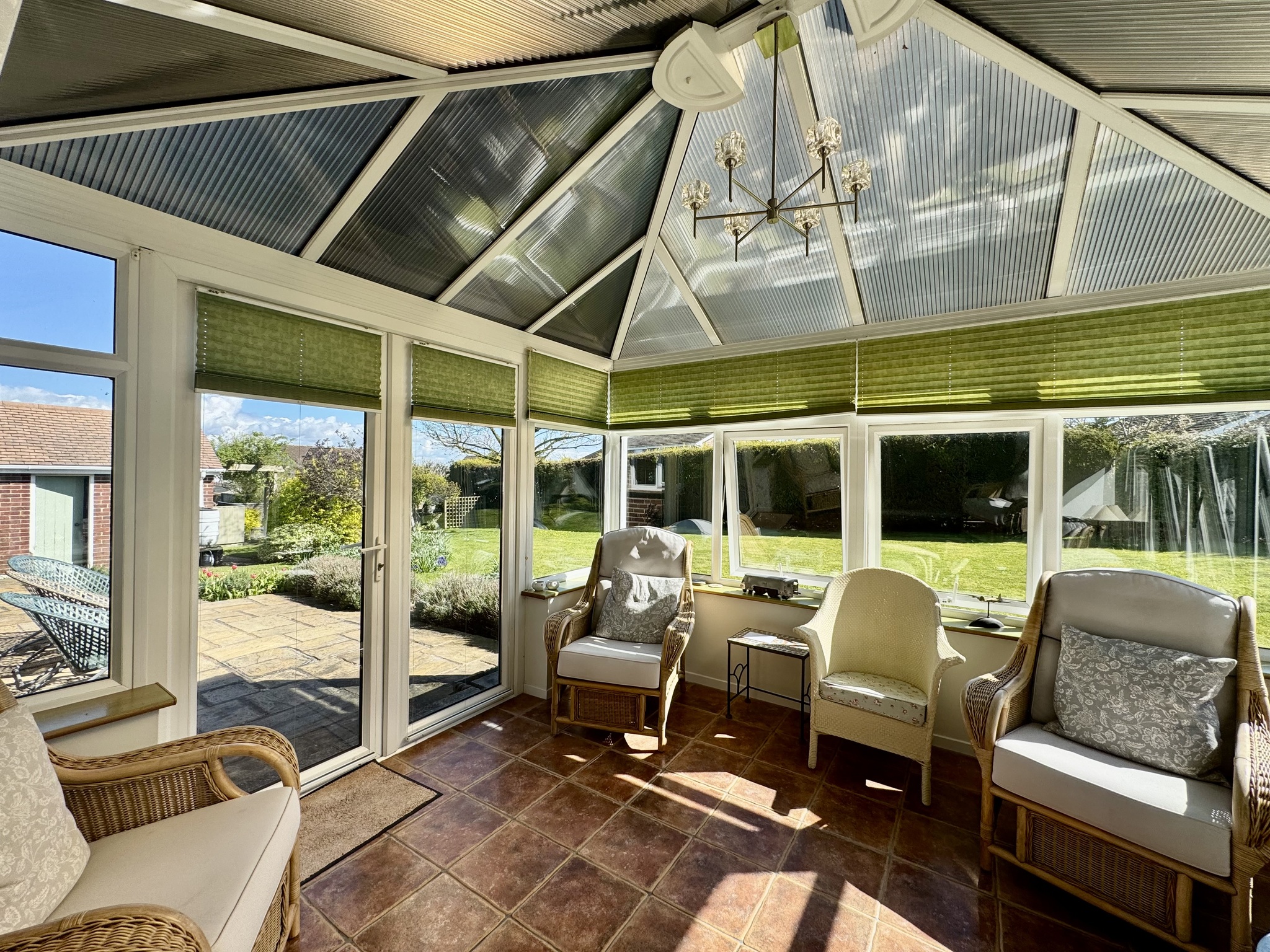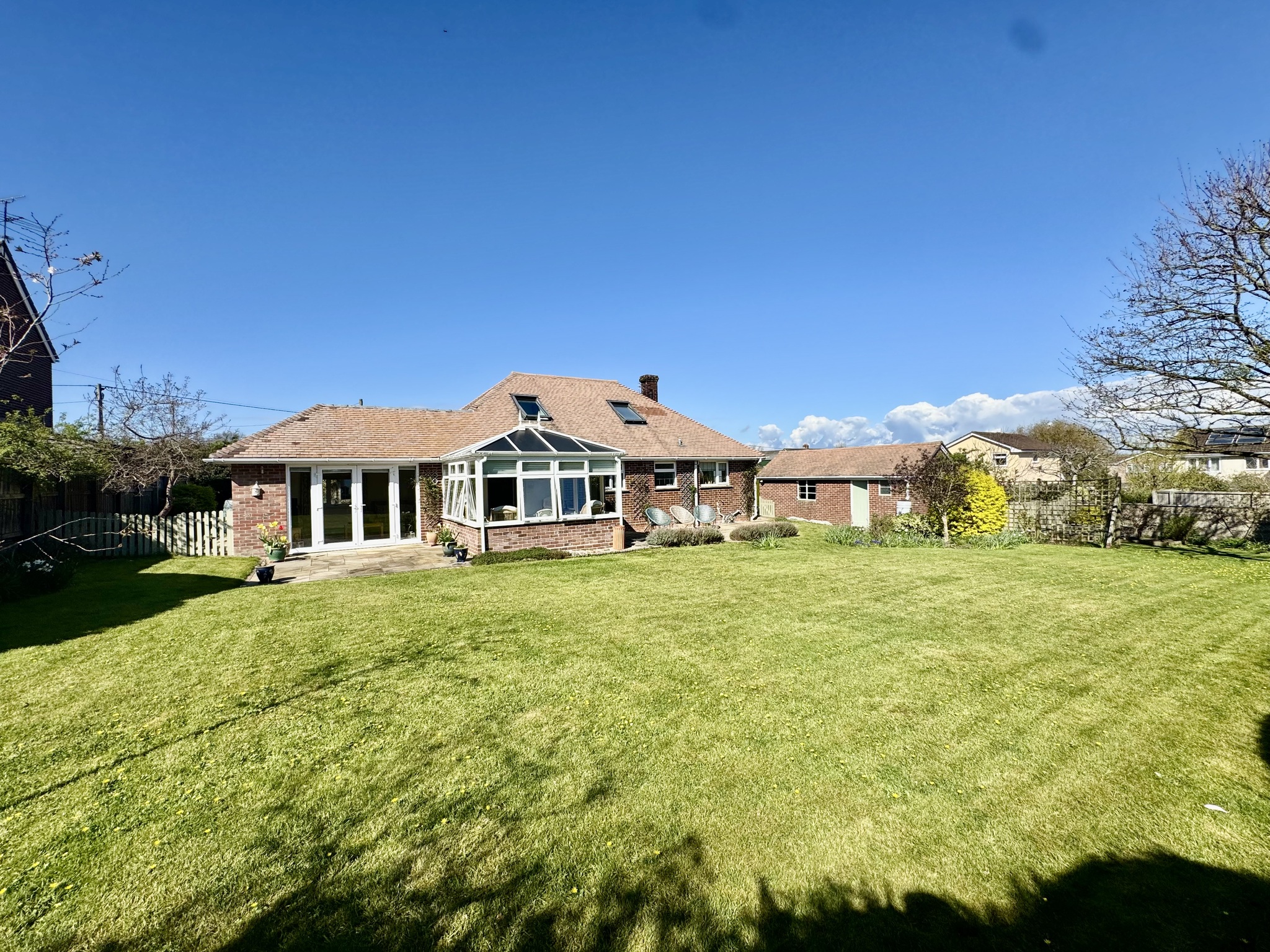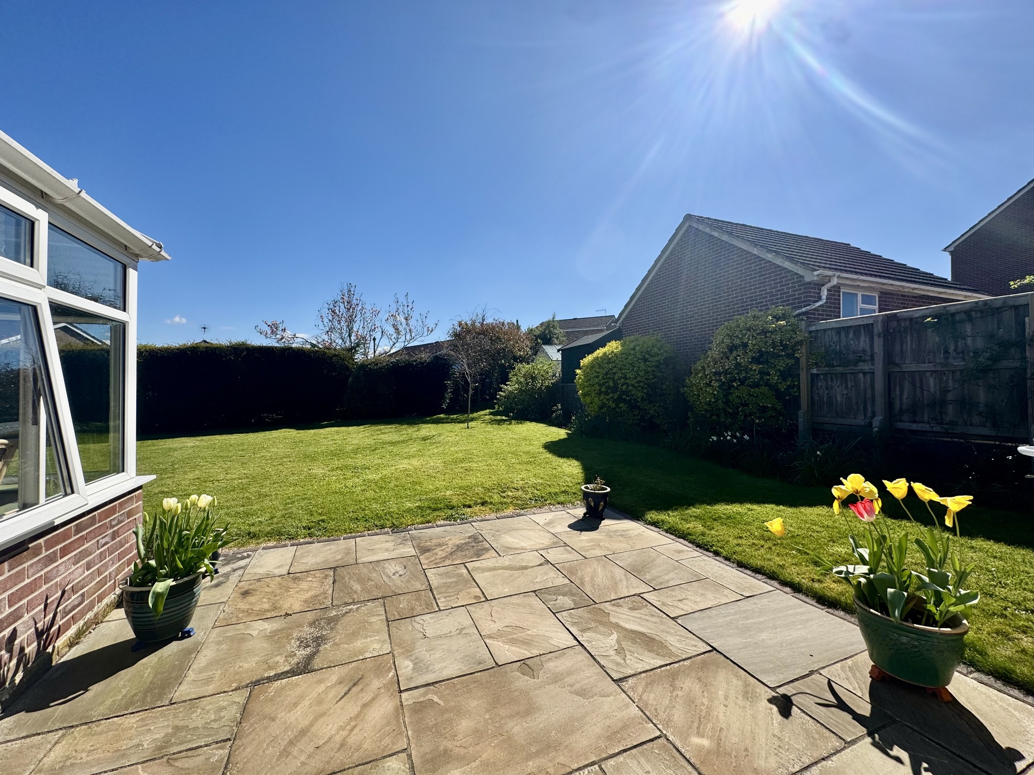 Adjacent to the property, a paved terrace and conservatory provide the perfect vantage point to enjoy the garden throughout the year, seamlessly blending indoor and outdoor living. The garden’s generous proportions and well-maintained presentation make it a standout feature of the home, offering both immediate enjoyment and future potential.
