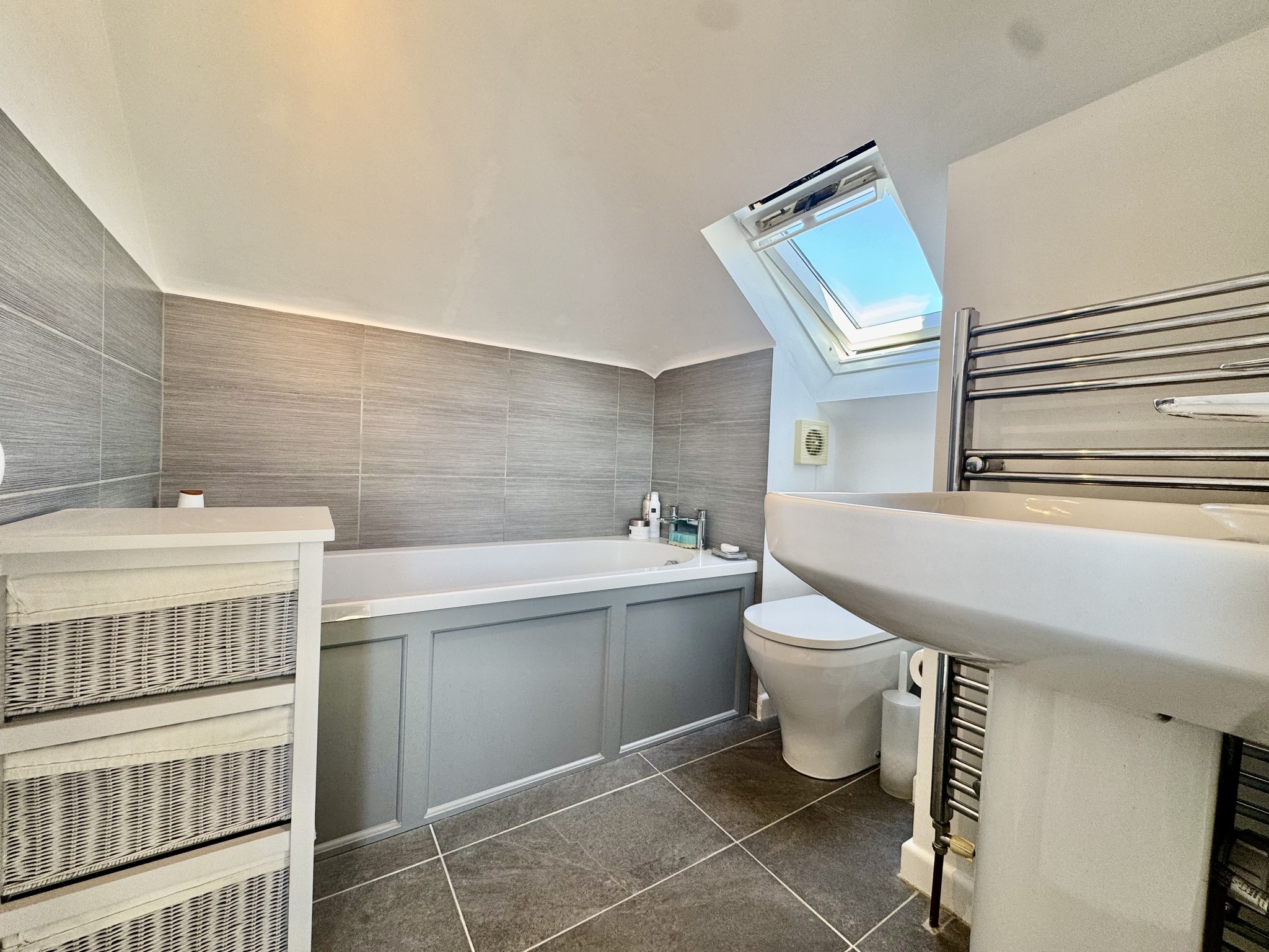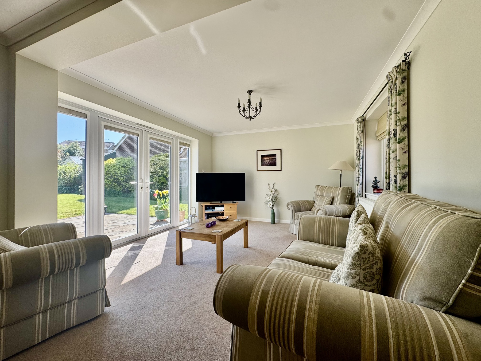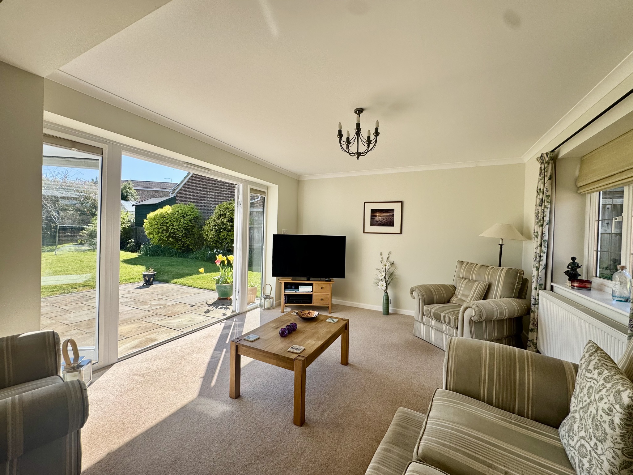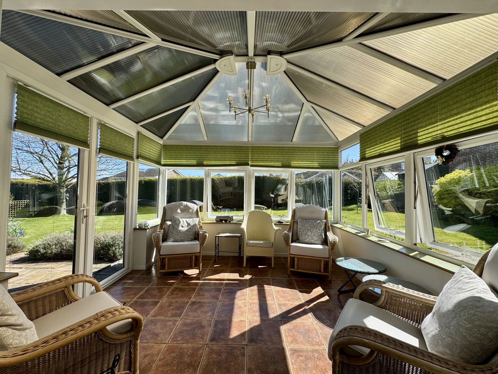 Adjacent to the property, a paved terrace and conservatory provide the perfect vantage point to enjoy the garden throughout the year, seamlessly blending indoor and outdoor living. The garden’s generous proportions and well-maintained presentation make it a standout feature of the home, offering both immediate enjoyment and future potential.