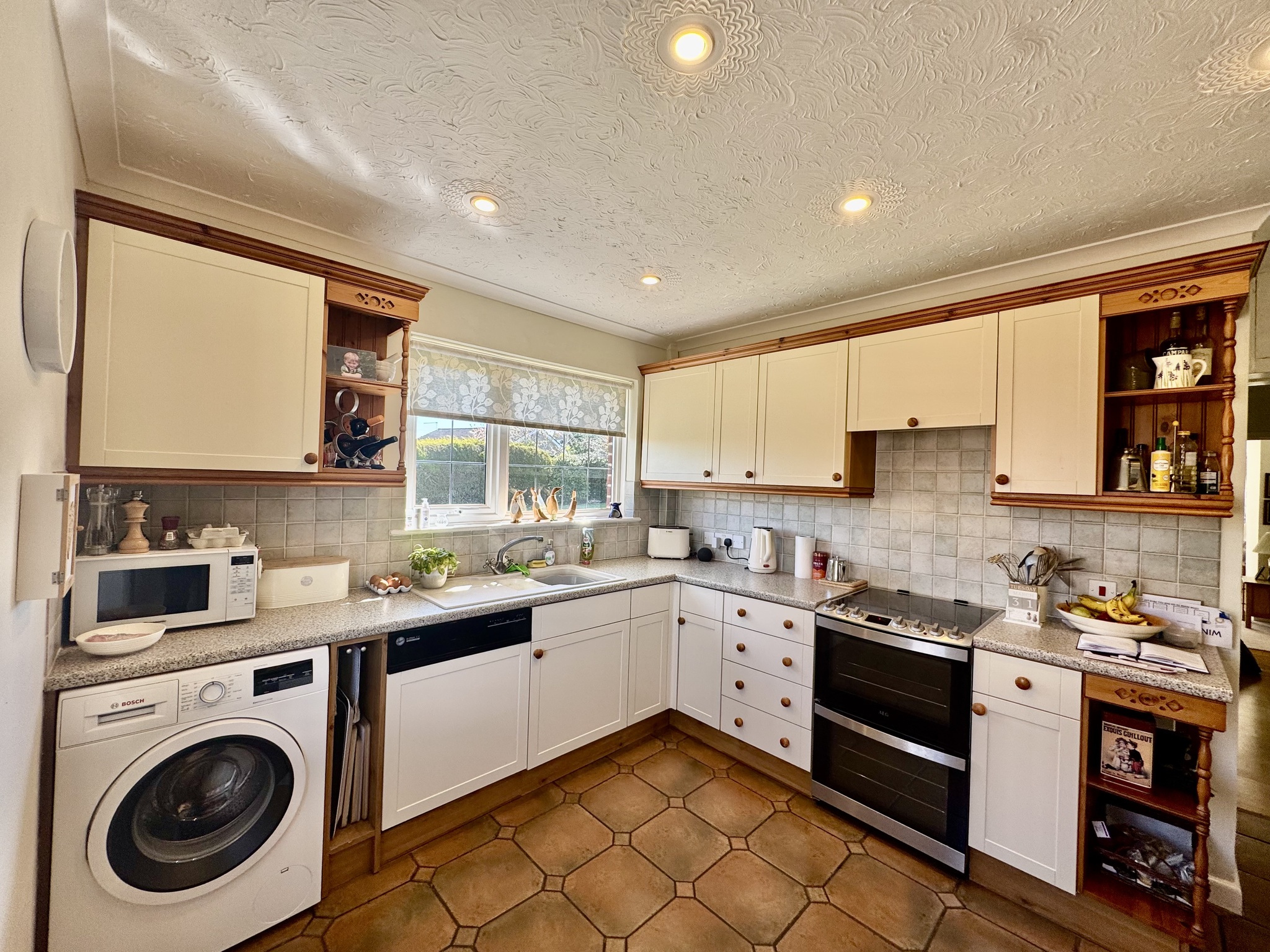 Set in a peaceful residential position, this substantial four/five-bedroom detached bungalow with an upstairs level offers generous and flexible accommodation, ideal for families or those seeking single-storey living with additional space.
